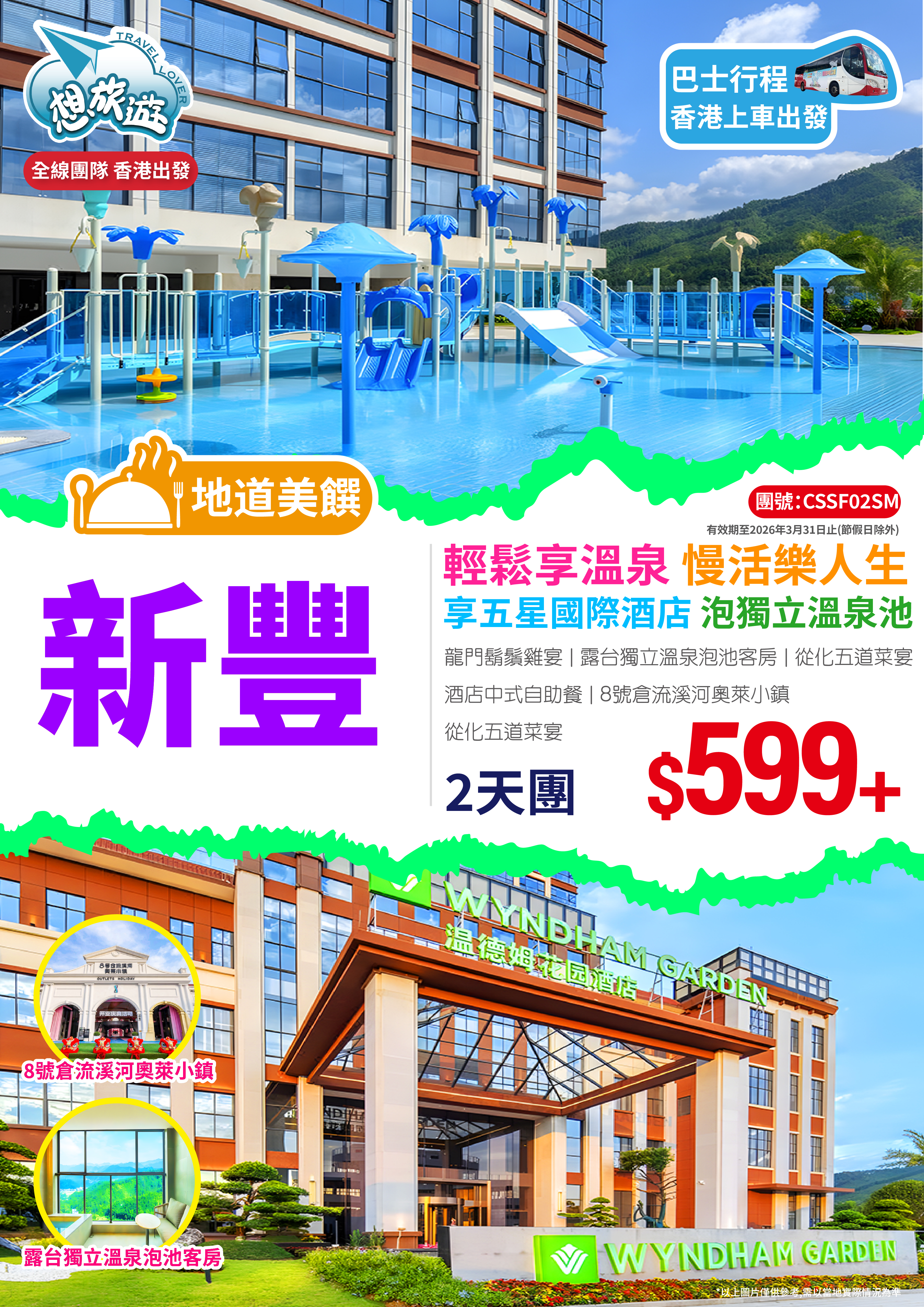 全新開業國際品牌新豐溫德姆花園酒店【露台獨立溫泉泡池客房】 純玩2天團