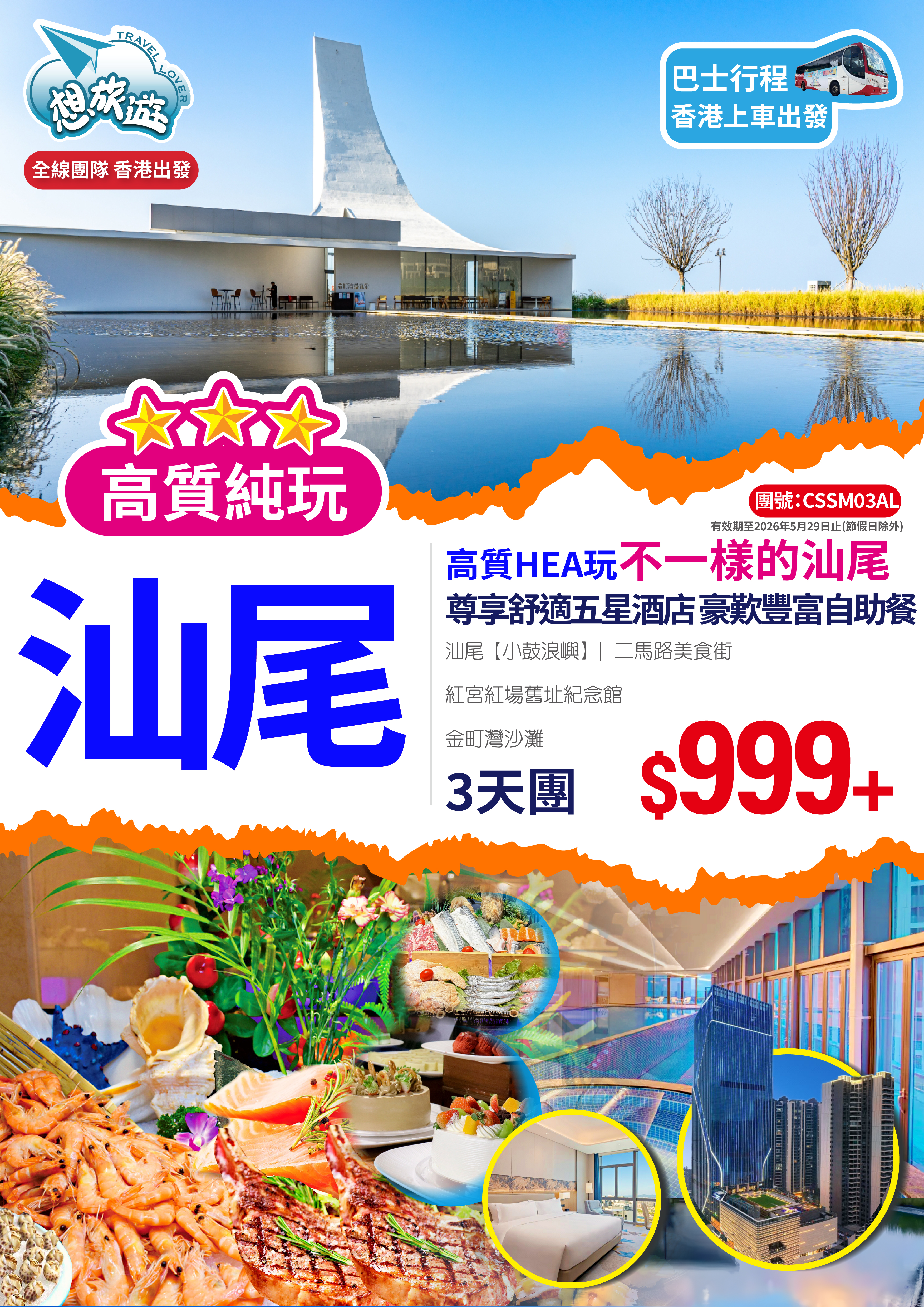 連住2晚國際品牌汕尾海迪溫德姆酒店&豪歎酒店豐富海鮮自助晚餐 純玩3天團
