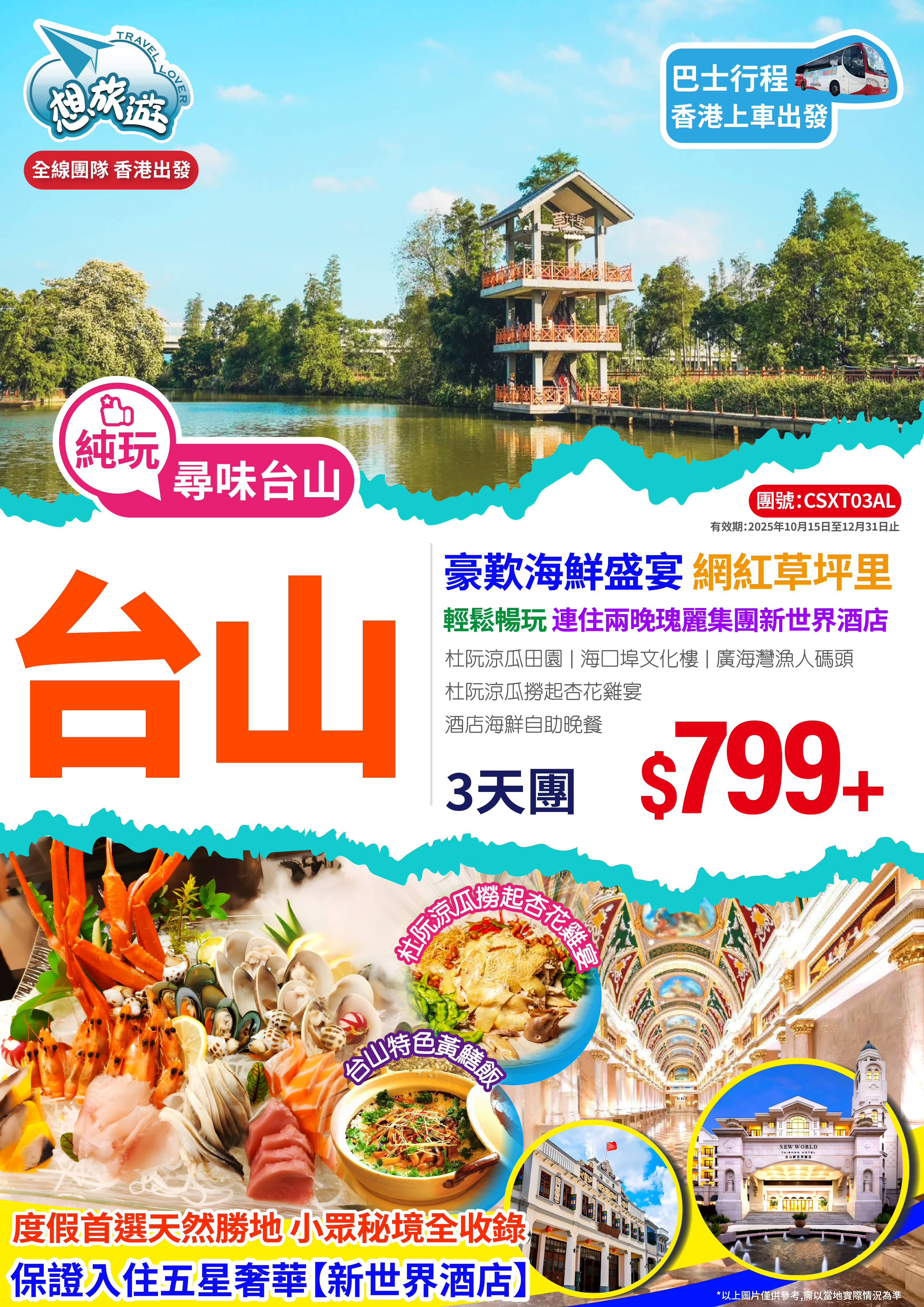 連住兩晚奢華品牌瑰麗酒店集團旗下台山【新世界酒店】豪歎【酒店海鮮自助晚餐】【廣海海鮮風味宴】【臺山黃鱔飯宴】 純玩3天團
