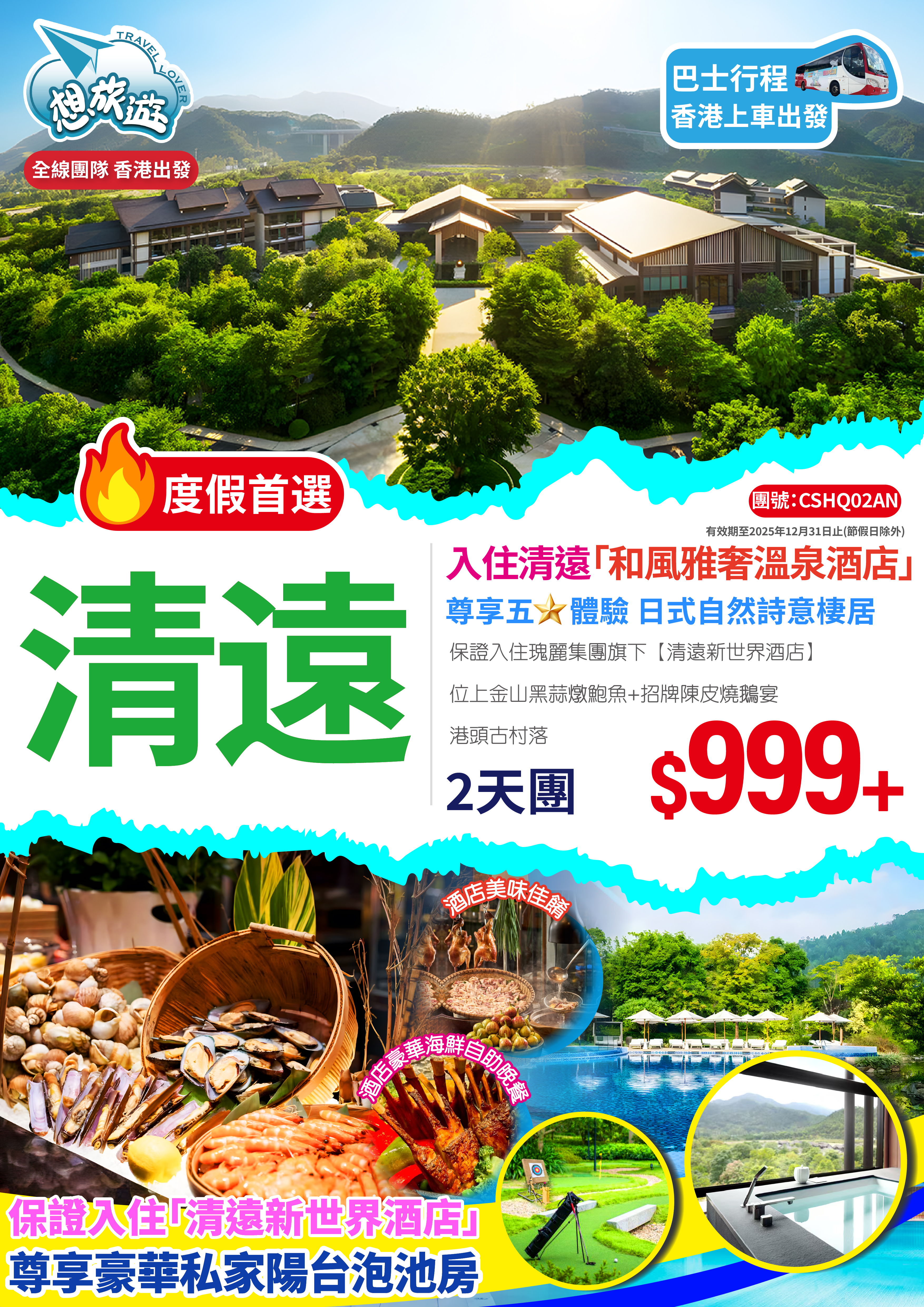 1.團費未包括旅行團服務費HK$80/天/位(包括導遊及司機),並於完團前由導遊個別向團員收取。 2.行程、膳食、酒店的安排次序以接待單位為準,如有變動,恕不另行通知。 3.車座位位置以當天本公司安排作準,客人不得異議。 4.為使旅客獲得完善的旅遊保障,建議所有(已成團旅行團)團員出發前必須自行購買旅遊綜合保險。 5.團費價格均以報名時為準,團費價格會因應旺季或供應商價格調整而改變,恕不另行通知。 6.本團不設香港領隊隨團出發。 7.出發當日如團友未能在集合地點依時出席,逾時將不會等候,團友將視為自動放棄及不設任何退款,請依時到達。 8.客人入住酒店在未獲相關單位或按國家規定標準正式評級期間,本社以準「X星」或「X星標準」 標示酒店級數供旅客參考。入住之酒店,除房間問題外,其他提供給客人享用之所有設施,在任何特殊情況下暫停或關閉及停止使用,實屬與本公司無關,亦不會另行通知或賠償。 9.如單人報團者,必須補回單人房差,如三人報名可選擇三人同房(房內只設兩張單人床,不設加床) 。選擇三人同房不設加床之旅客將視為同意自願放棄半間房的權利。 10.根據旅遊業監管局(旅監局)發出的指令,本公司將向顧客收取印花成本。 11.單張上所有行程/住宿/餐飲之圖片僅供參考。如有變更,以實際出品為準。 12.為確保消費者權益,詳情請參閱 (旅行團報名及責任細則) 客人可向門市職員索取或瀏覽網址 https://travellover.com.hk 13.旅客必須取得印花收據方可獲得『旅遊業監管局賠償基金』保障。 Travellers must obtain a receipt with a levy stamp to be protected by the Travel Industry Compensation Fund。