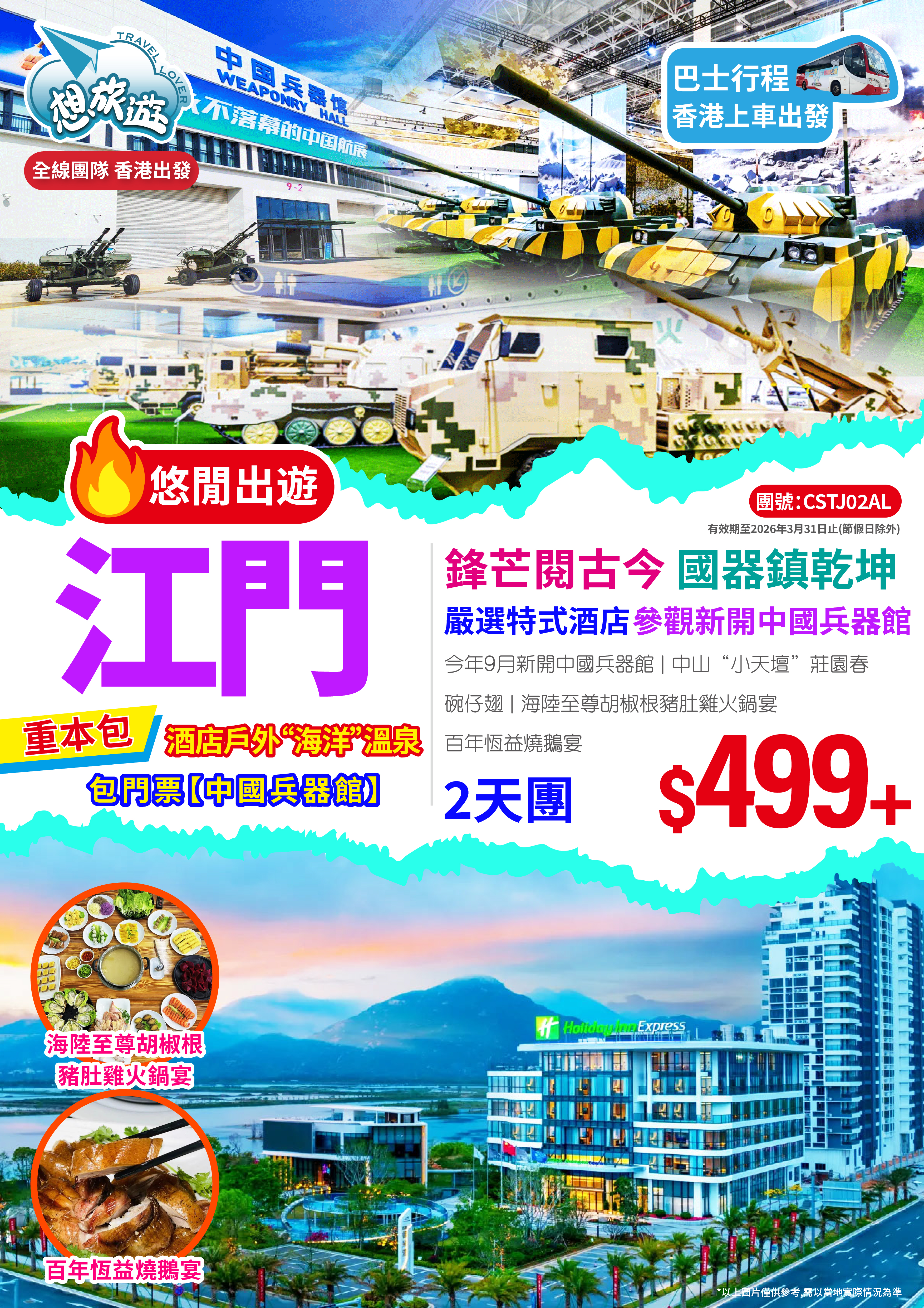 洲際酒店集團旗下【江門銀湖灣濱海智選假日酒店】重本包酒店戶外「海洋」溫泉、暢玩酒店室外空中泳池 重本包門票【中國兵器館】純玩2天團
