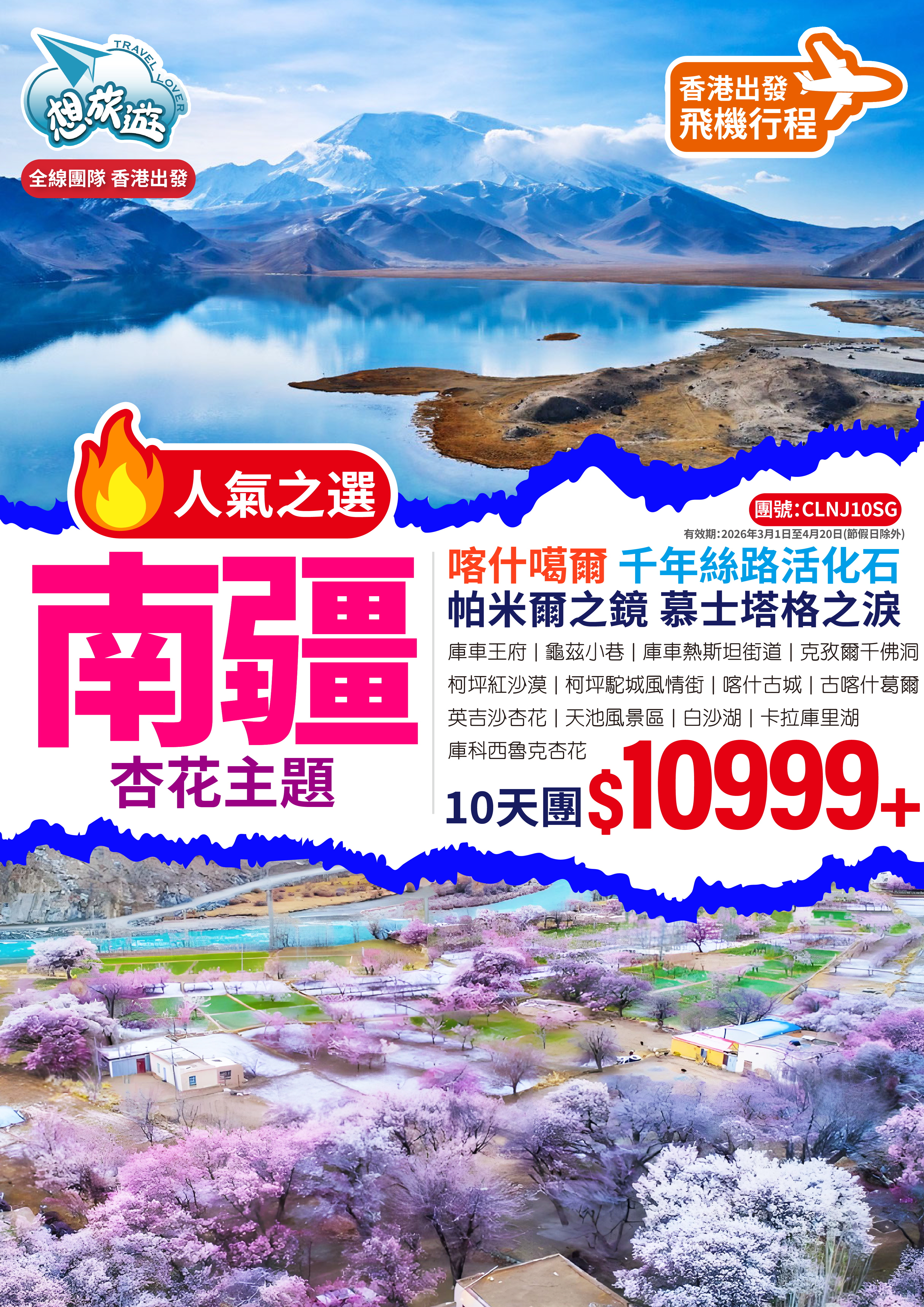 純玩南疆杏花主題:從天山到帕米爾的春花之旅 雙飛1動1臥直航10天團