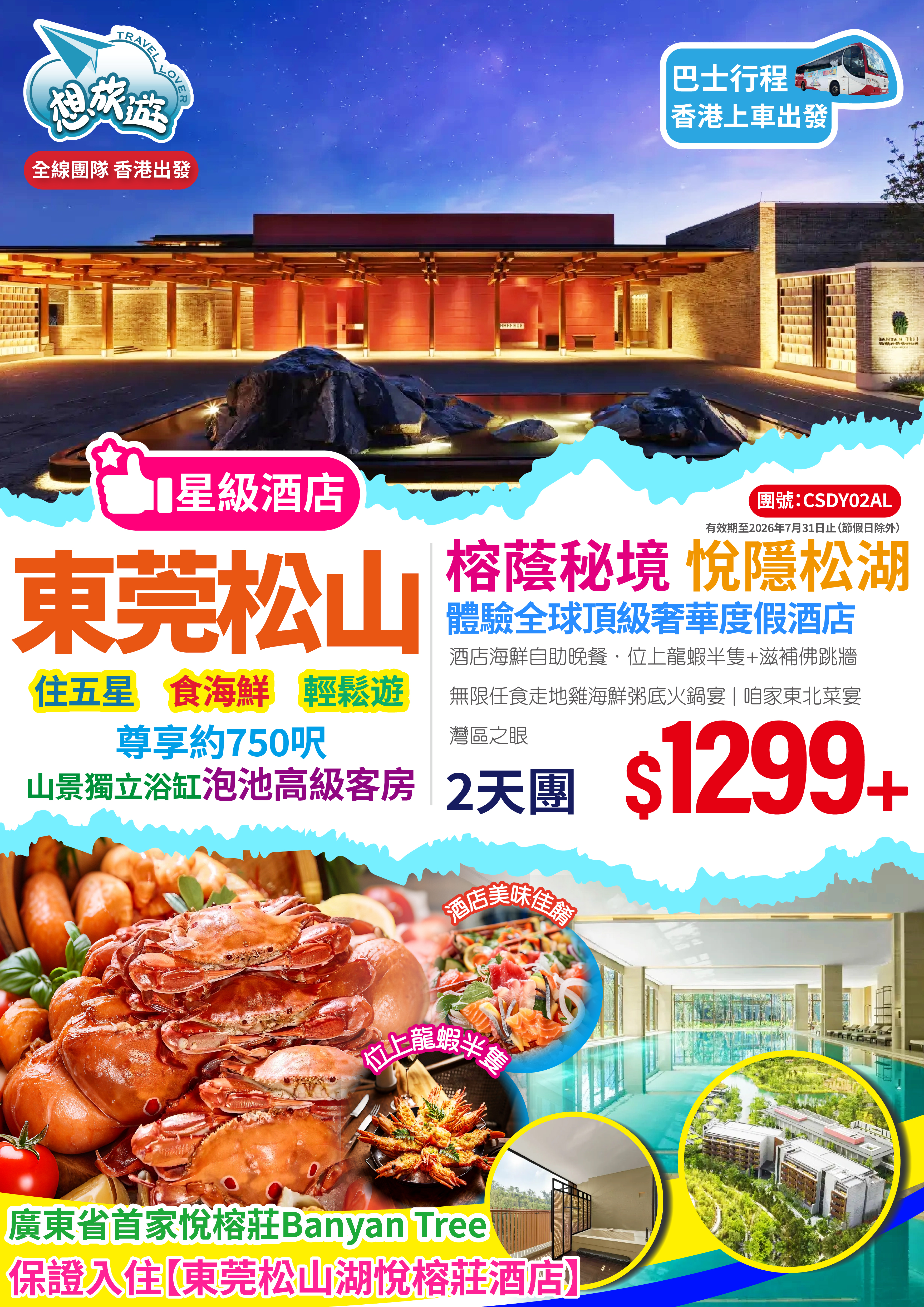 深圳/東莞/星級酒店/全球頂級奢華度假酒店/廣東省首家悅榕莊/酒店海鮮自助晚餐/純玩