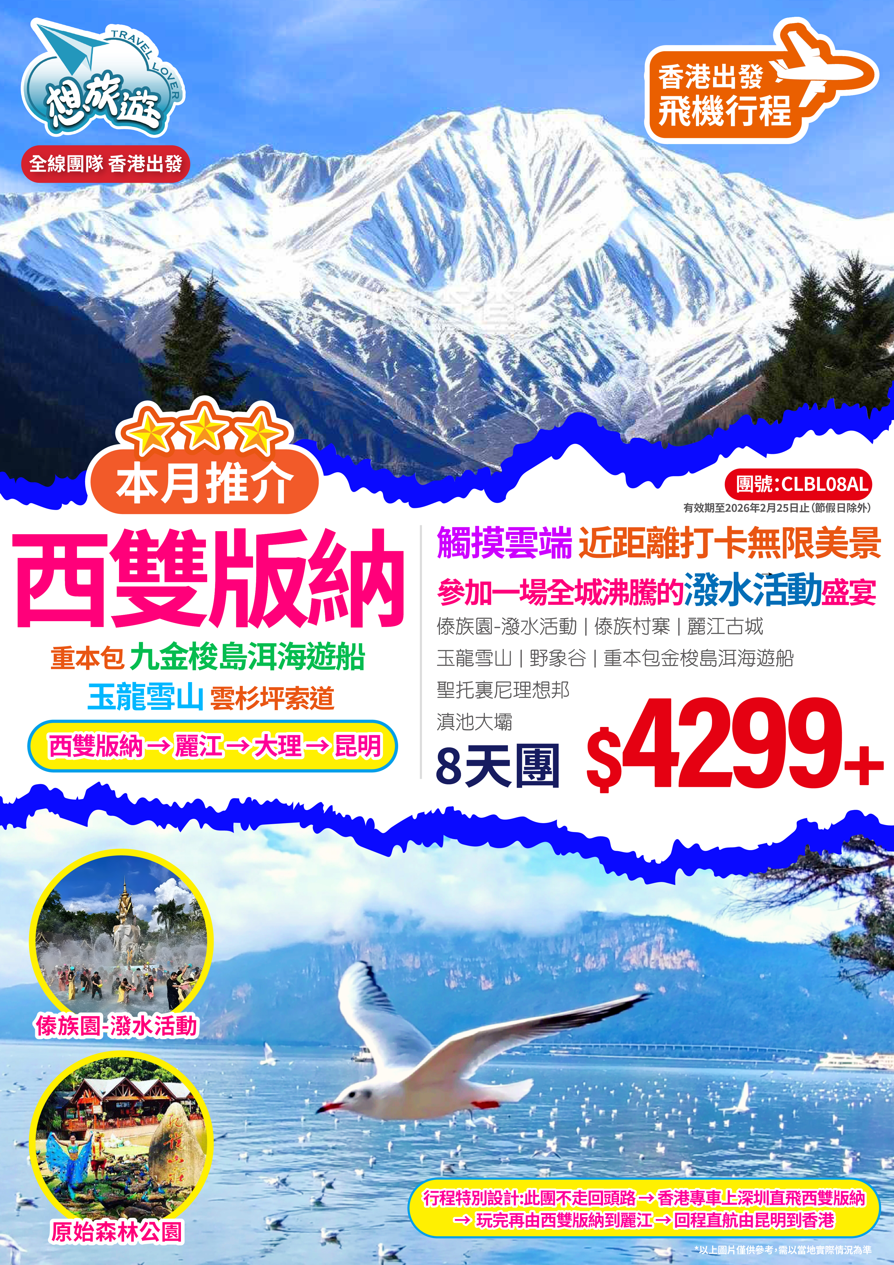 雲南 西雙版納-麗江-大理-昆明精華遊8天團