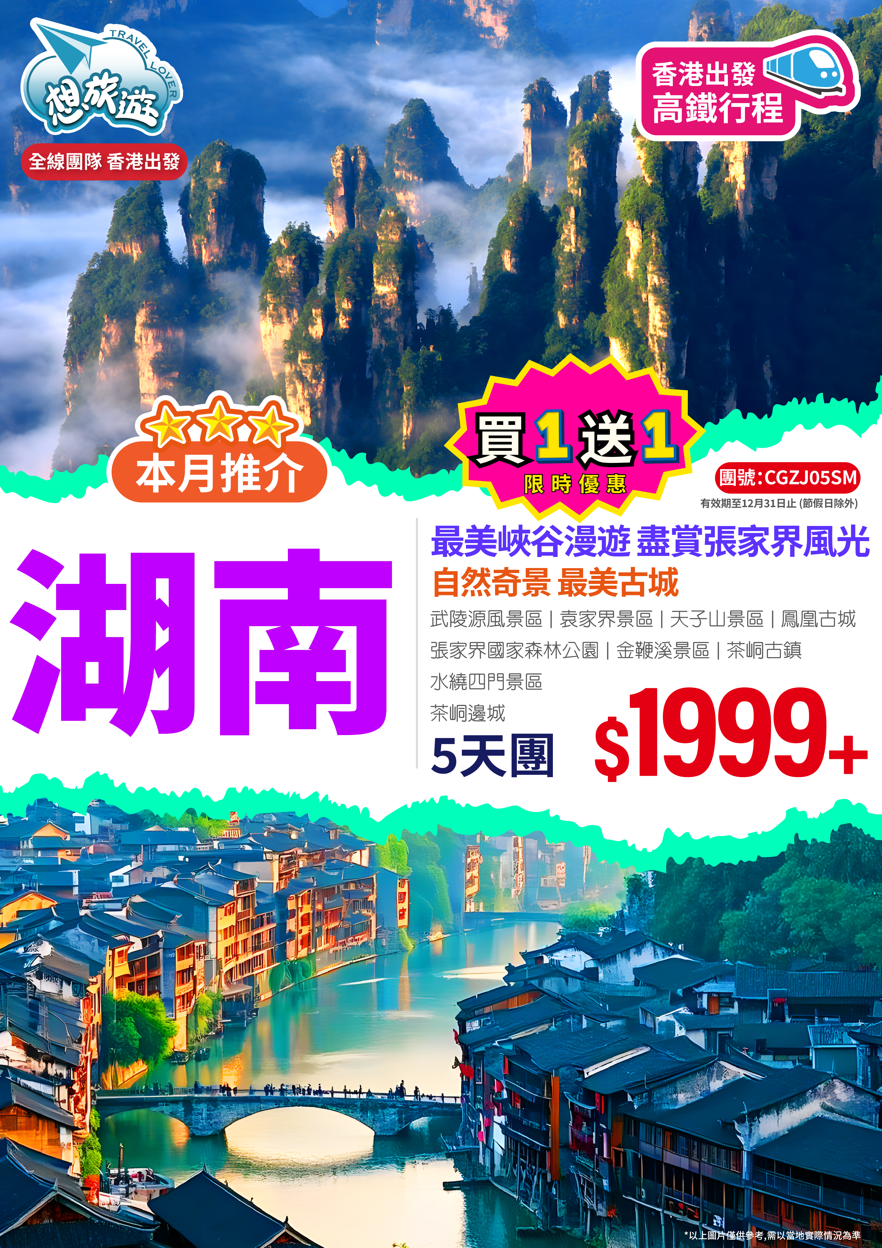 最美峽谷漫遊 湖南張家界 5天團(買一送一)