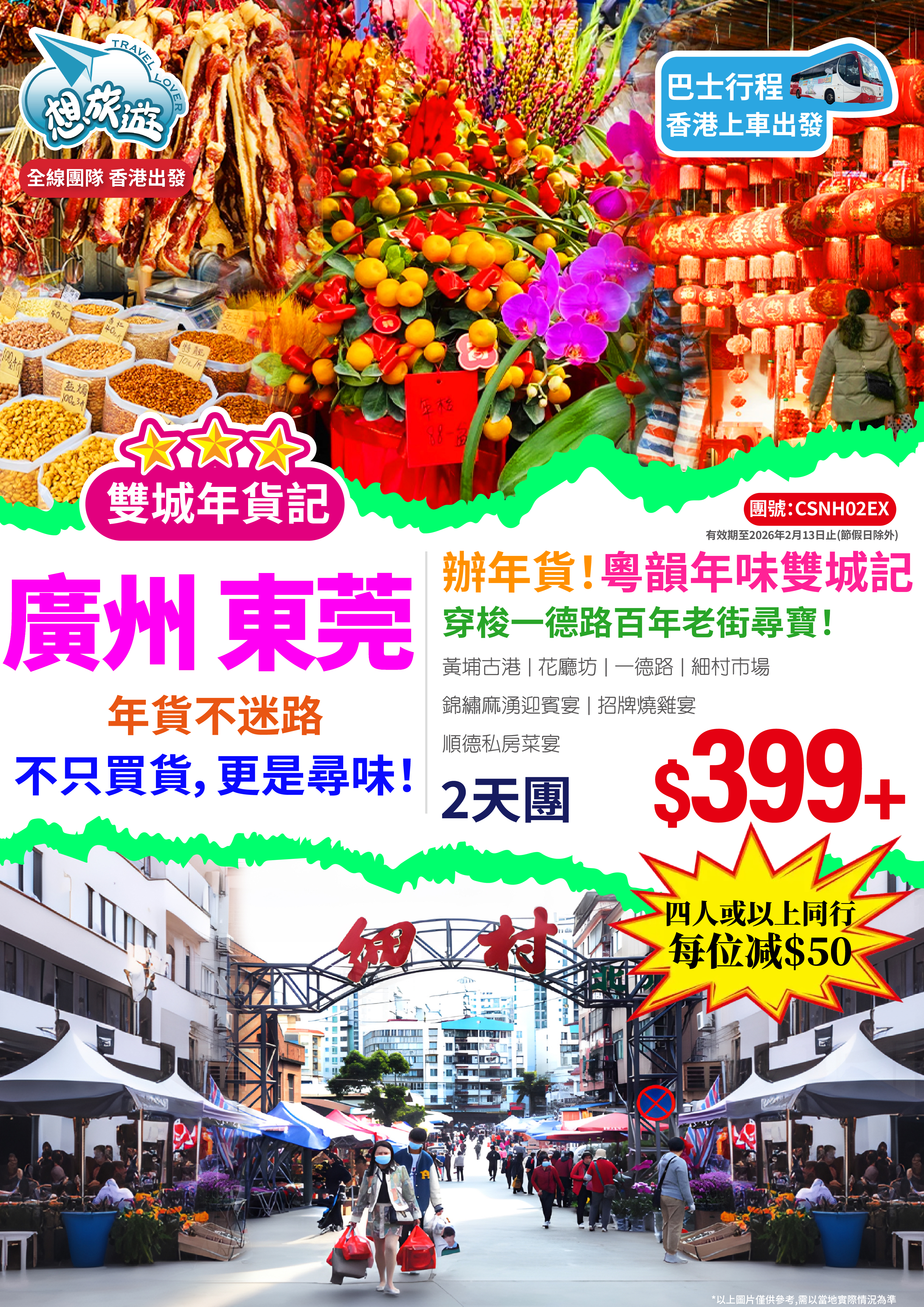 廣州/番禺/東莞/雙城記/辦年貨/純玩/優惠