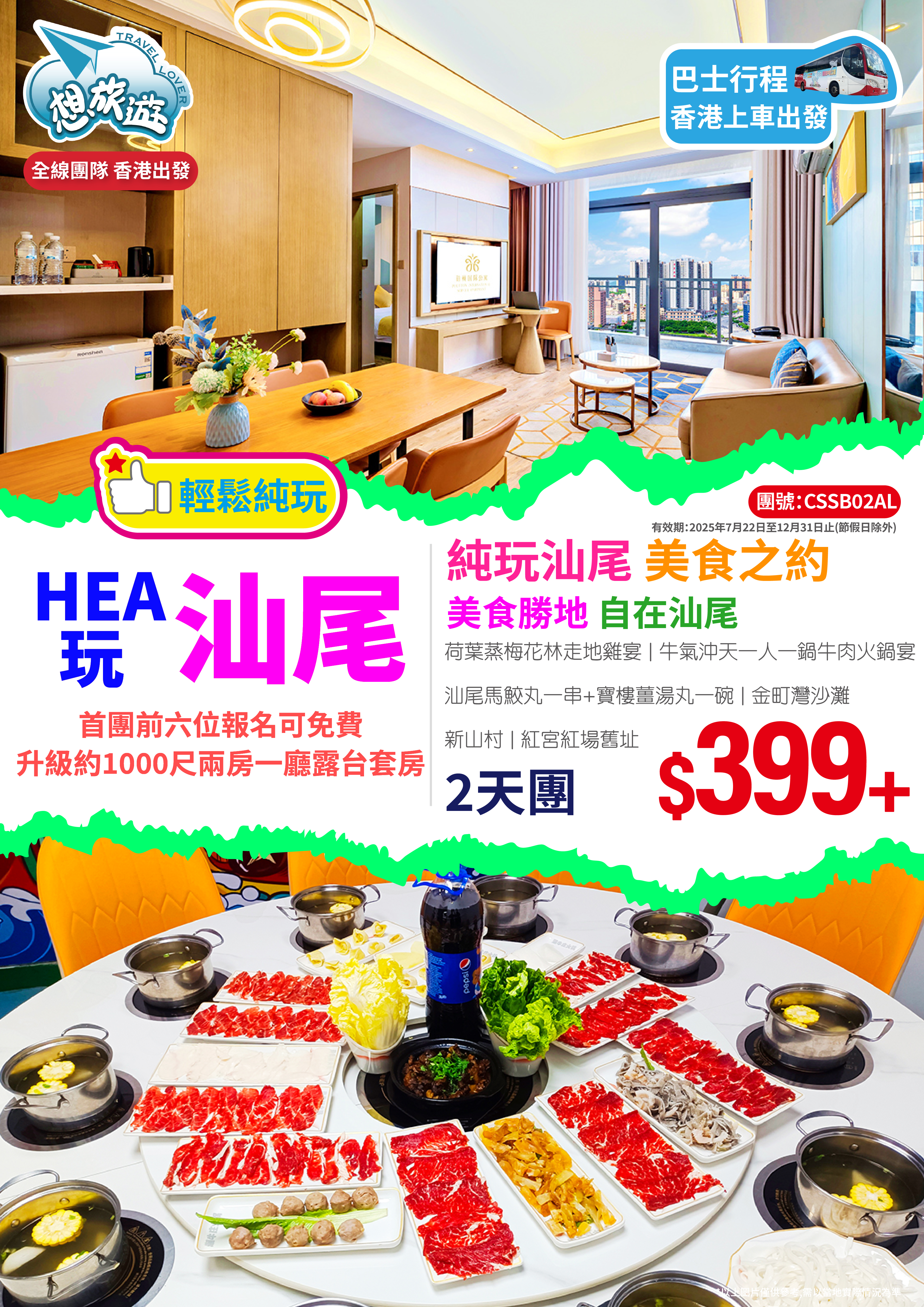 暢遊汕尾 品嚐地道美食【牛氣沖天一人一鍋牛肉火鍋宴】【汕尾地道風味海鮮宴】2天團