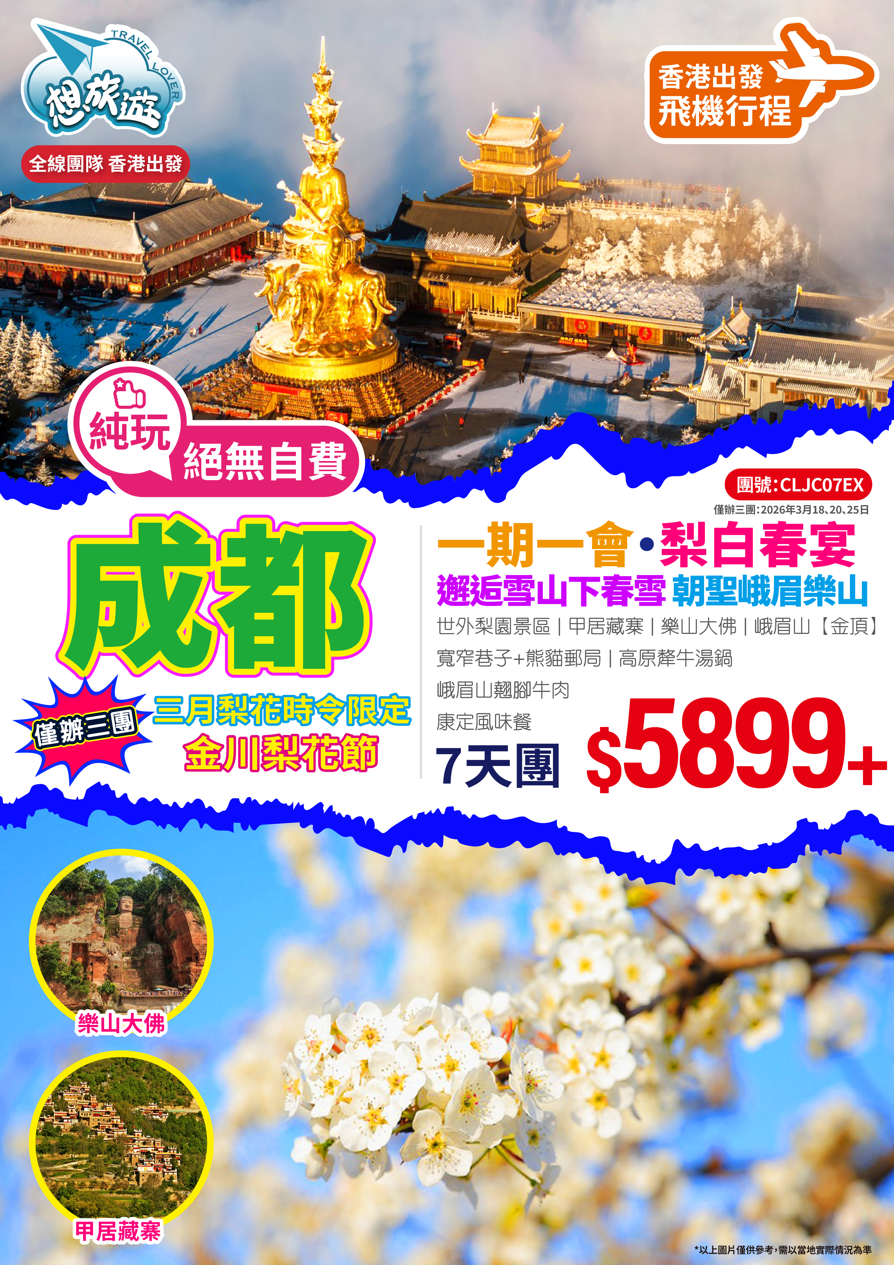 僅辦三團三月梨花時令限定金川梨花節-峨眉山樂山-成都純玩7天團
