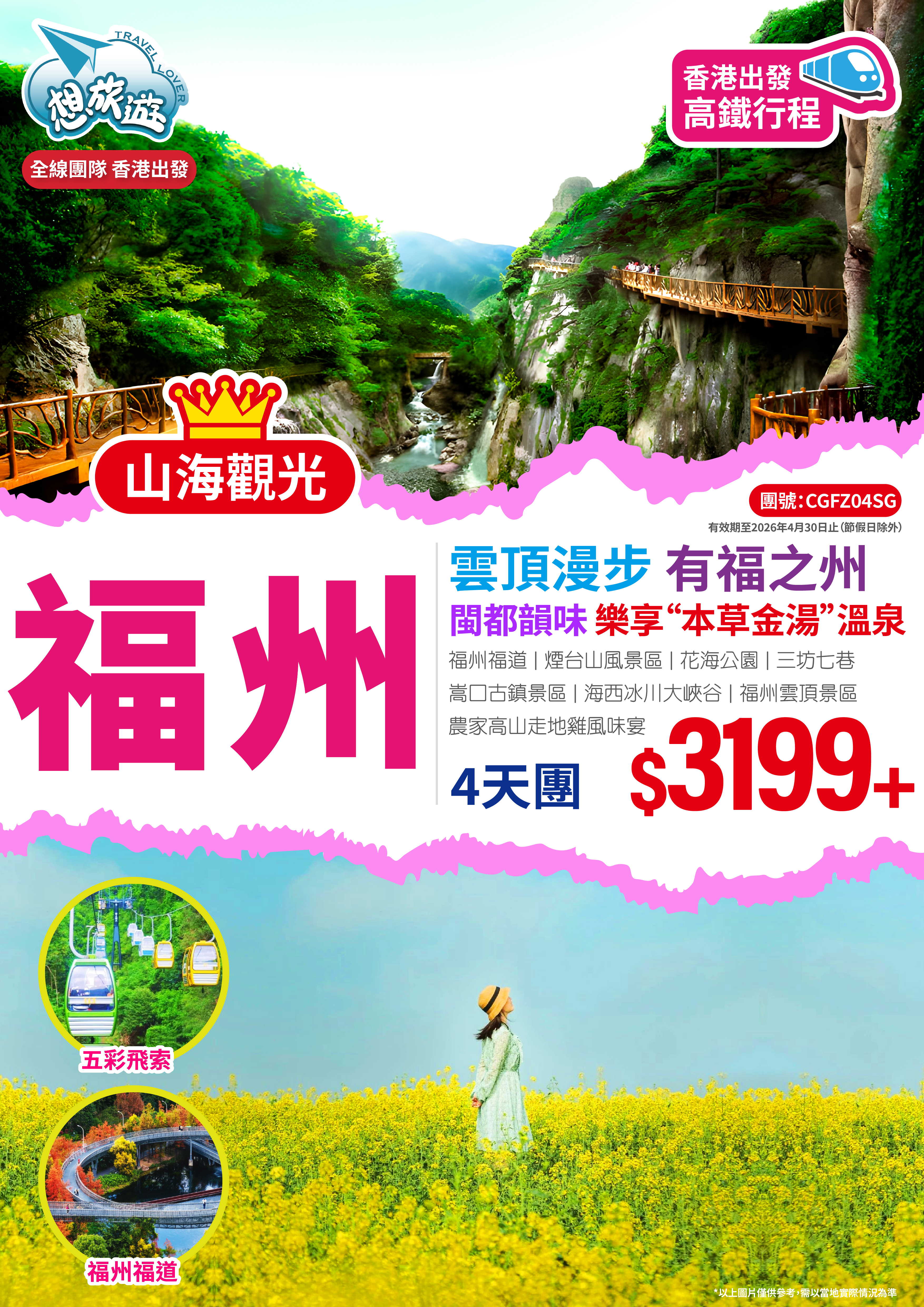 1. 團費不包括香港旅遊業監管局0.15%印花稅。2. 團費未包括當地導遊、旅遊車司機及旅行社相關人員之服務費每位每天HK$130,於完團前由領隊/導遊個別向團員收取。3. 高鐵旺季如不能安排西九龍出發及回程,本公司有可能採用旅遊巴來往九龍塘至深圳北站,團員不得籍故反對及退出或要求任何額外補償。4. 為使旅客獲得完善的旅遊保障,本公司建議所有團員出發前必須自行購買旅遊綜合保險。5. 航班有可能作出更改,最終以高鐵公司安排作準;酒店、膳食及行程次序有可能因應實際情況而變動, 均以高鐵公司及當地接待社安排為準,如有任何更改,恕不另行通知。6. 如遇以上酒店客滿,本公司將安排同級之酒店。7. 確實團費均以報名時為準,旺季加幅另行通知。8. 為確保消費者權益,詳情請參閱 (旅⾏團報名及責任細則),客⼈可向分⾏職員索取。9. (高鐵及廣東省) 團隊或不設香港領隊,但仍設當地導遊接待 . (飛機線) 如團隊人數為14人以下,團隊或不設香港領隊, 但仍設當地導遊接待 , 所有不設領隊將安派工作人員於指定集合地點安排集合事宜。10. 根據旅遊業監管局(旅監局)指引,旅行社如因『迫不得已理由』取消旅行團,處理相關退款時可收取主要服務供應商因應旅行團取消而徵收之退票及手續費,確實金額以供應商之最終回覆作準;有關收費請參閱旅行團細則及責任問題須知。或可自行瀏覽旅監局網站(https:tia.org.hk/)11. 所有單張及網頁之圖片僅供參考。12. 此團隊不設茶會,敬請留意。13. 旅客必須取得印花收據方可獲得『旅遊業監管局賠償基金』保障。Travellers must obtain a receipt with a levy stamp to be protected by the Travel Industry Compensation Fund。