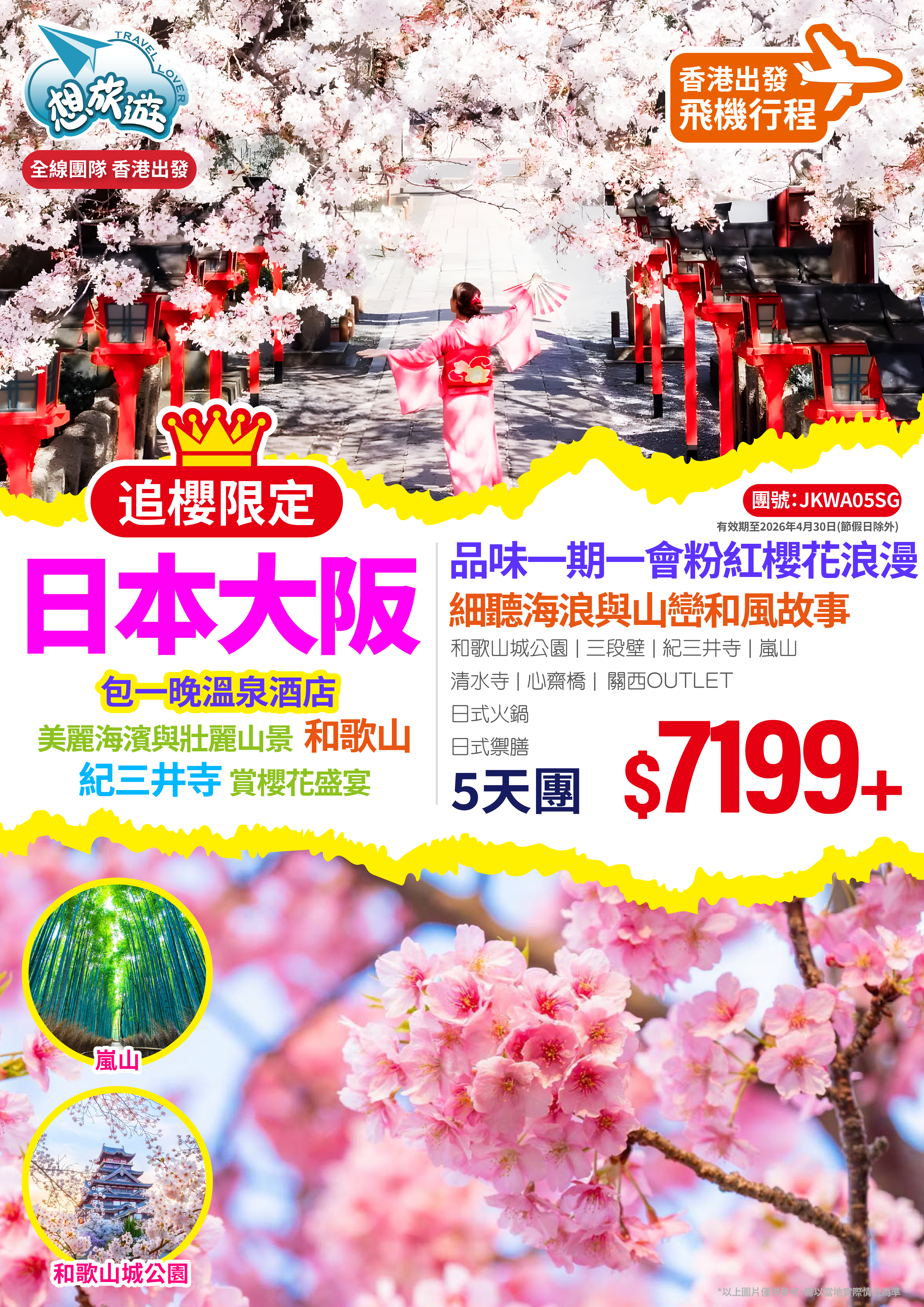 品味一期一會粉紅櫻花浪漫 日本大阪5天團