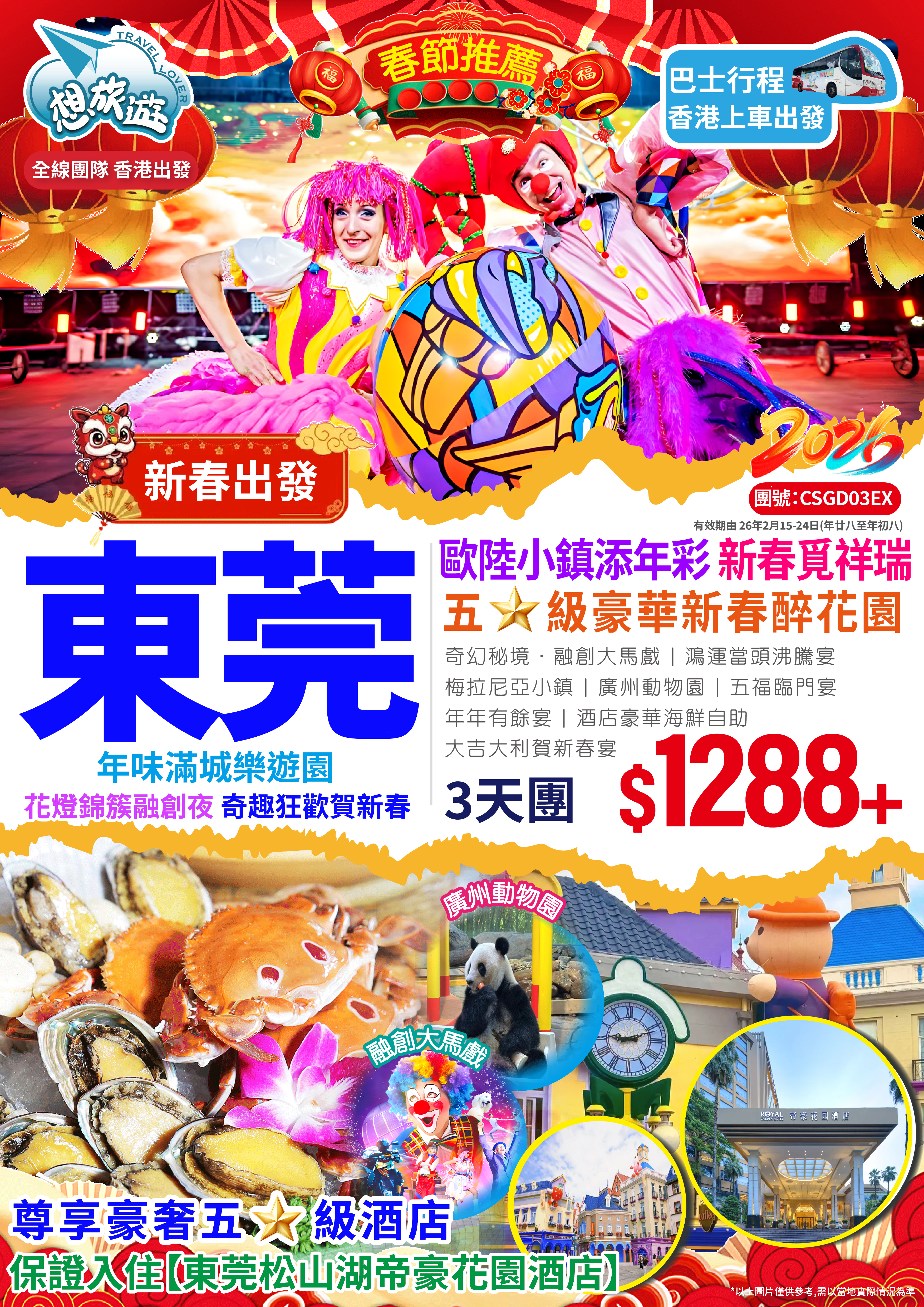 【春節加班】入住五星級【東莞松山湖帝豪花園酒店】豪歎【酒店豪華海鮮自助晚餐】 暢遊【融創樂園】【奇幻秘境·融創大馬戲】【廣州動物園】純玩3天團