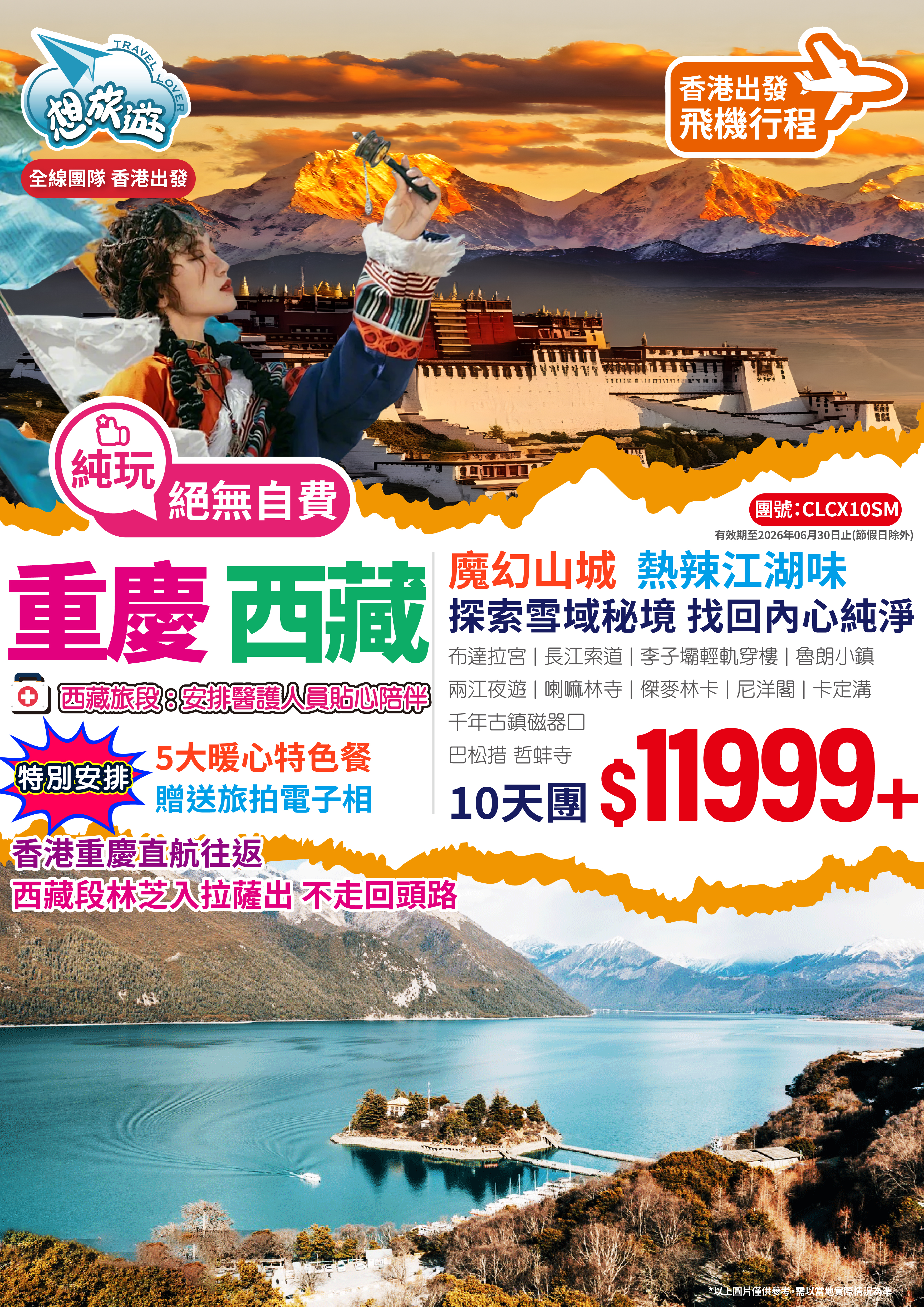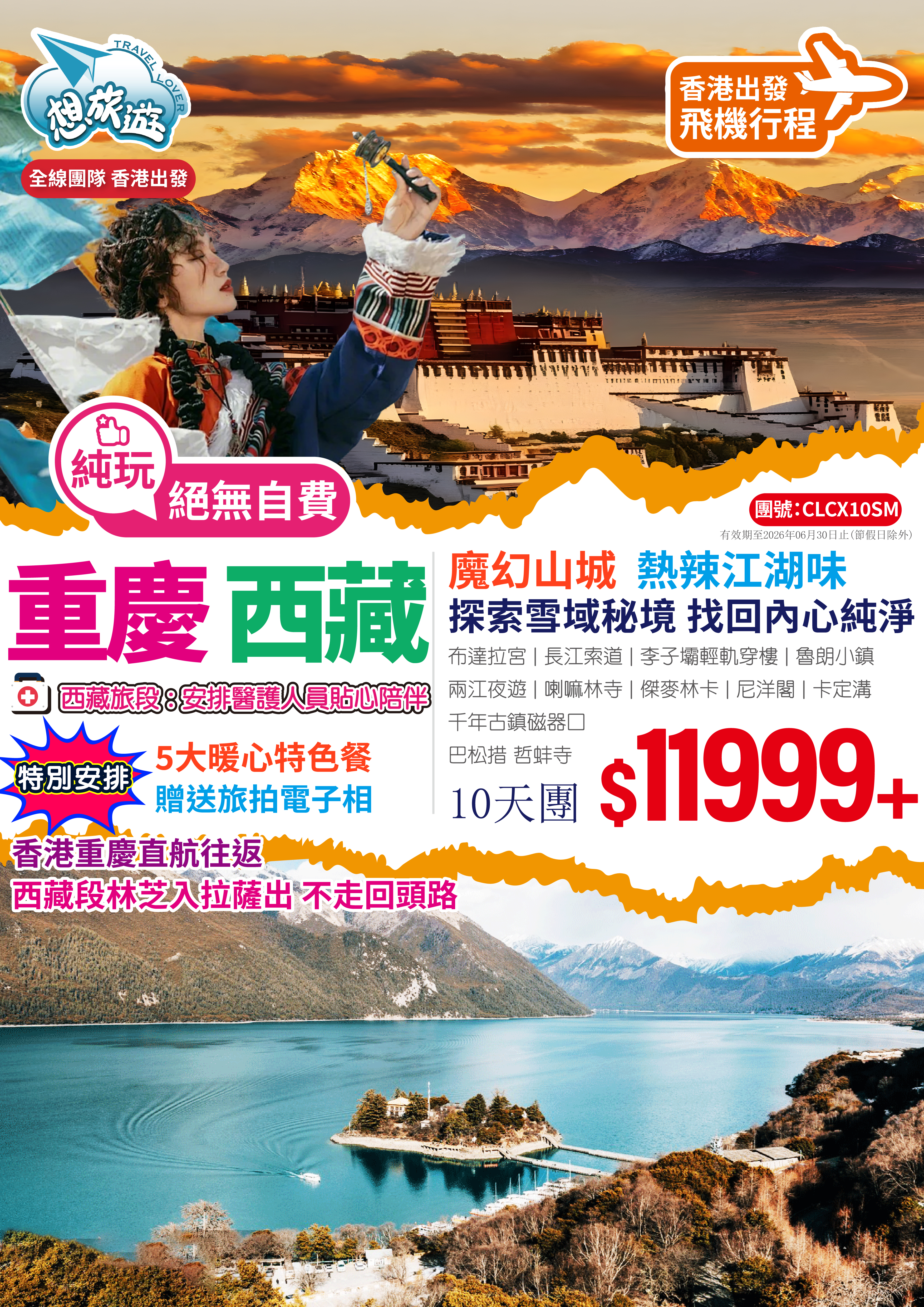香港重慶直航往返 西藏段林芝入拉薩出 不走回頭路 重慶西藏10天團