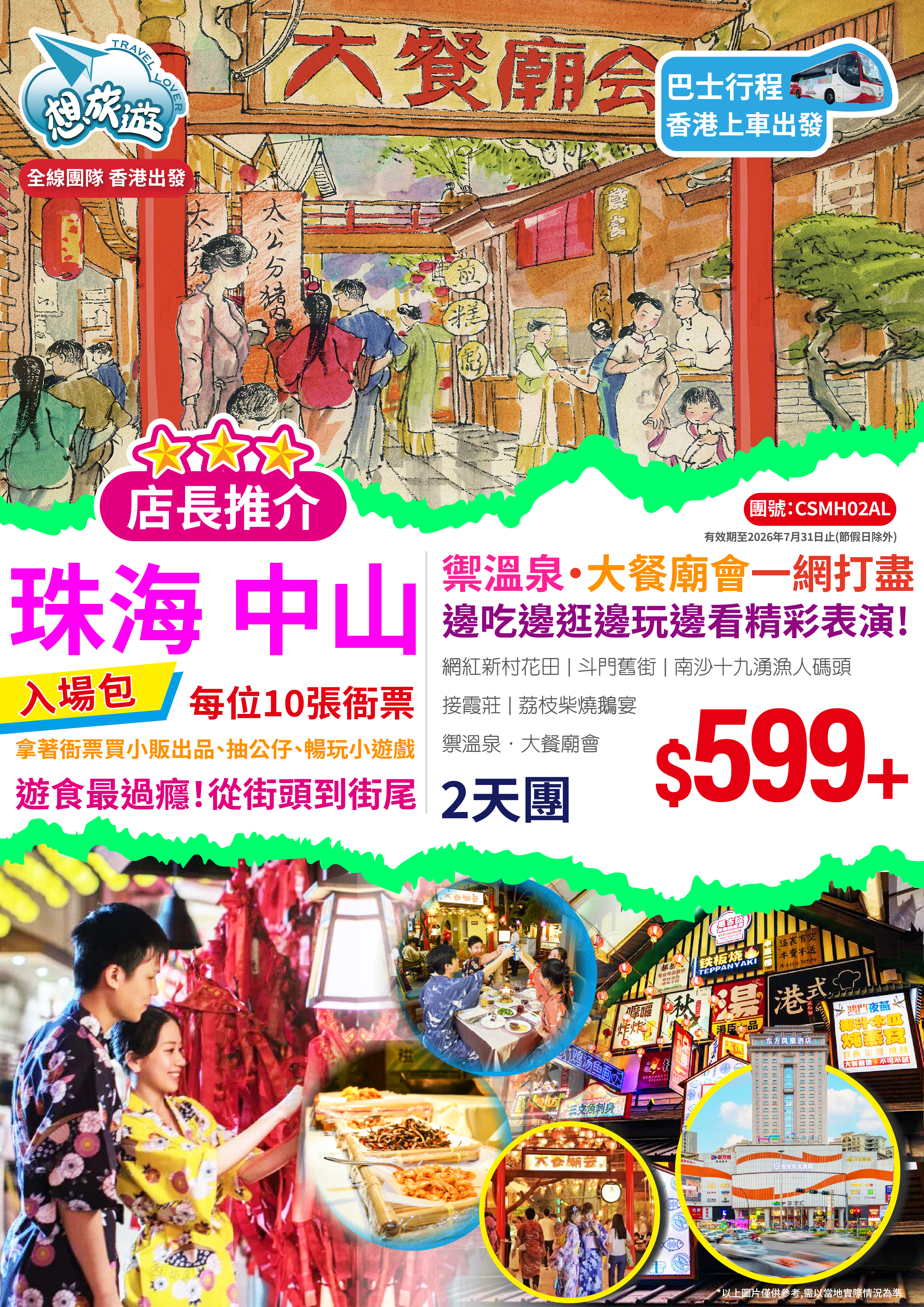 中山/珠海/御溫泉/大餐廟會/表演/自助/遊戲/花/純玩