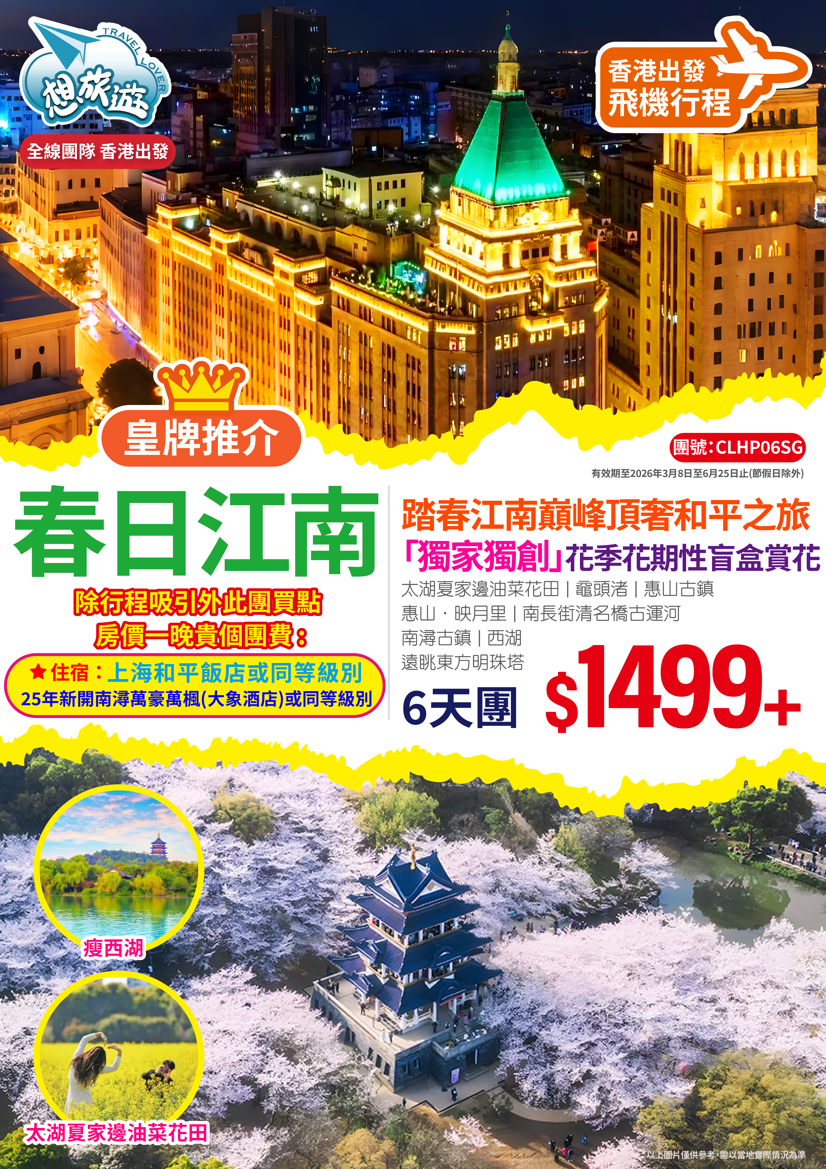 踏春江南巔峰頂奢和平之旅獨家獨創花季花期性盲盒賞花(踏春不踏空)6天團