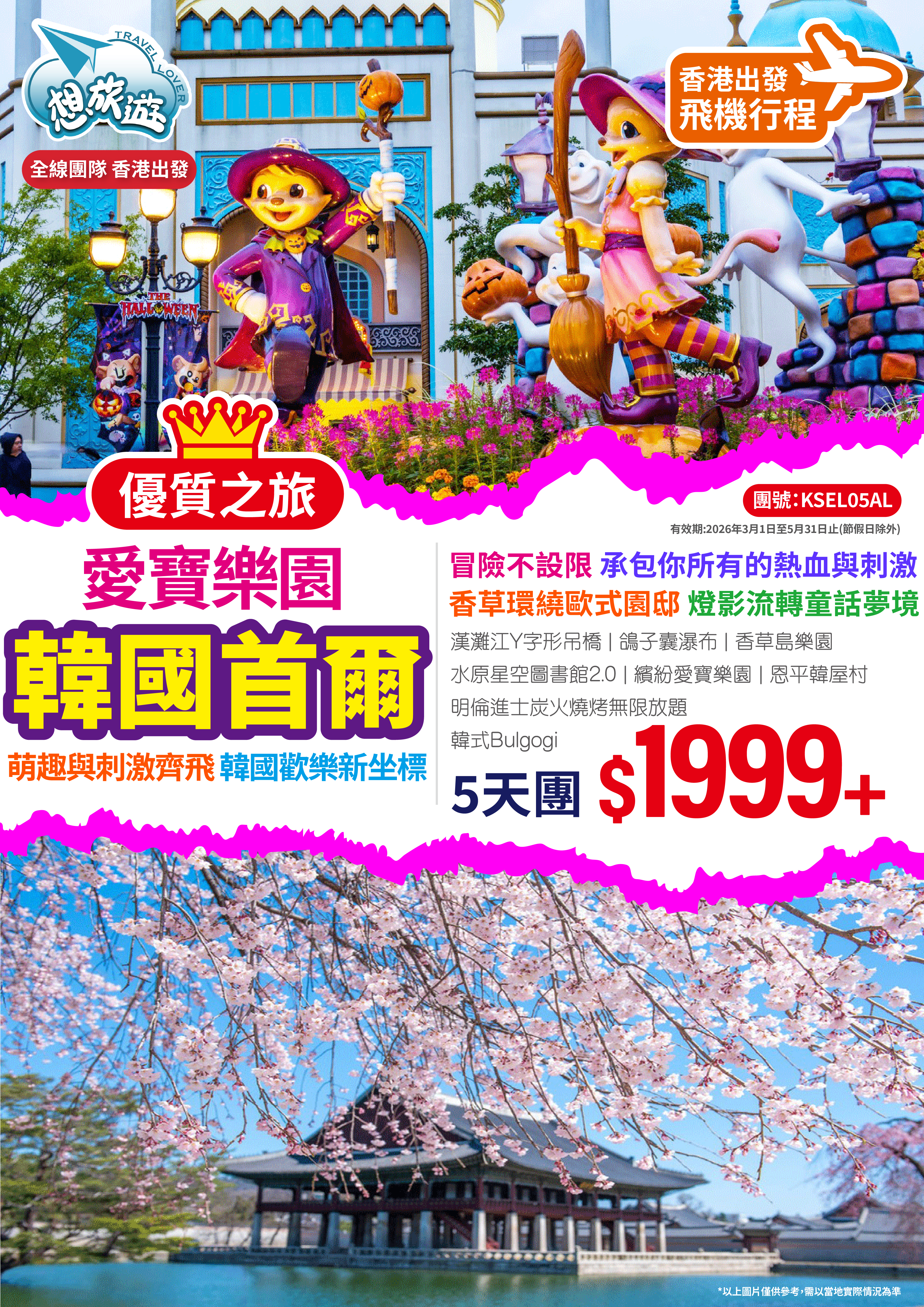 以上圖片及行程資料只供參考,確切行程內容、自選活動內容、酒店、餐膳等會因應季節、天氣、交通或其他因素而有所變動,以報名時取得的文字行程表為準 **