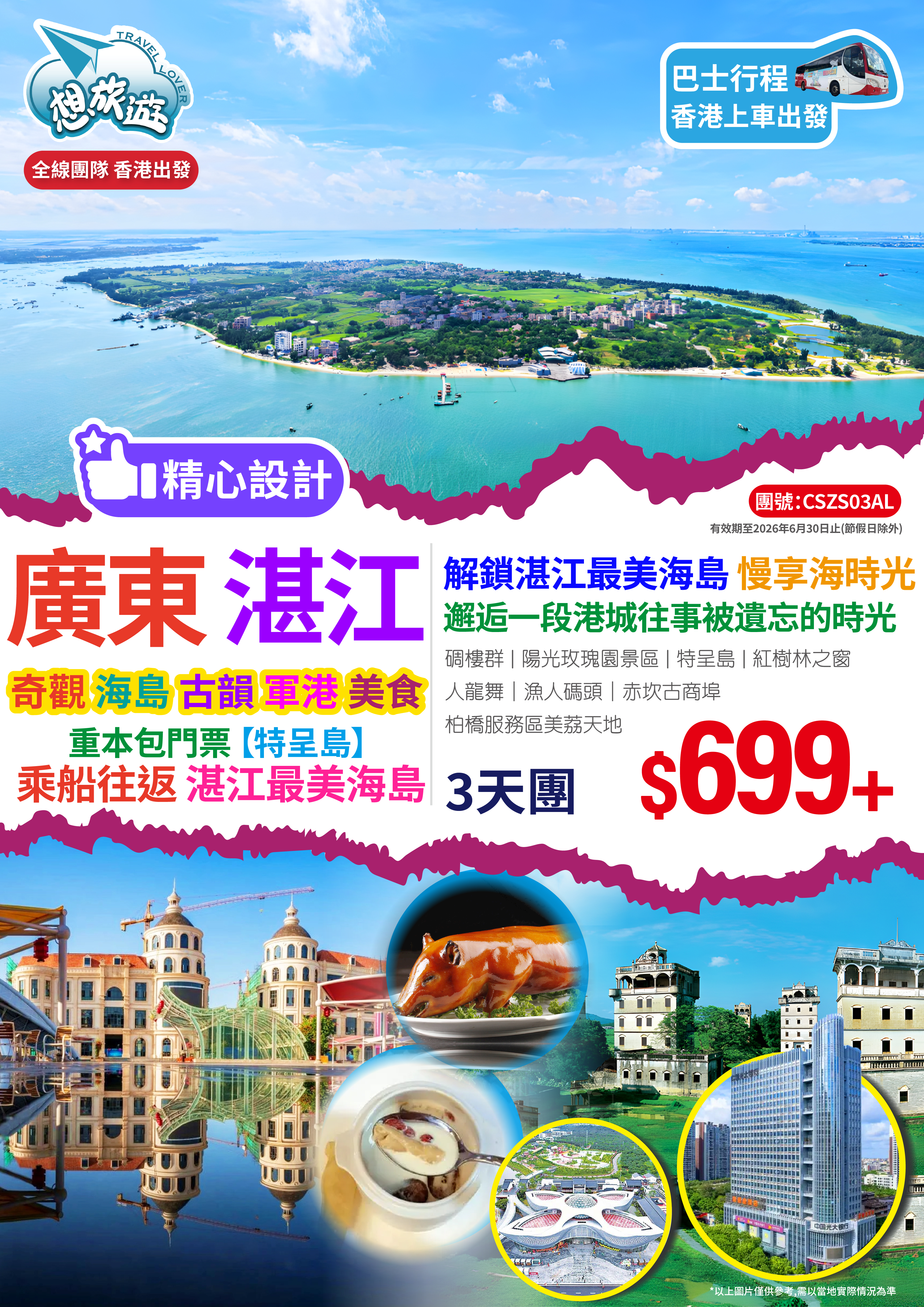 中山/開平/湛江/連住兩晚/ 碉樓群/陽光玫瑰園景區/特呈島/赤坎古商埠/陽帆豆豉展覽館