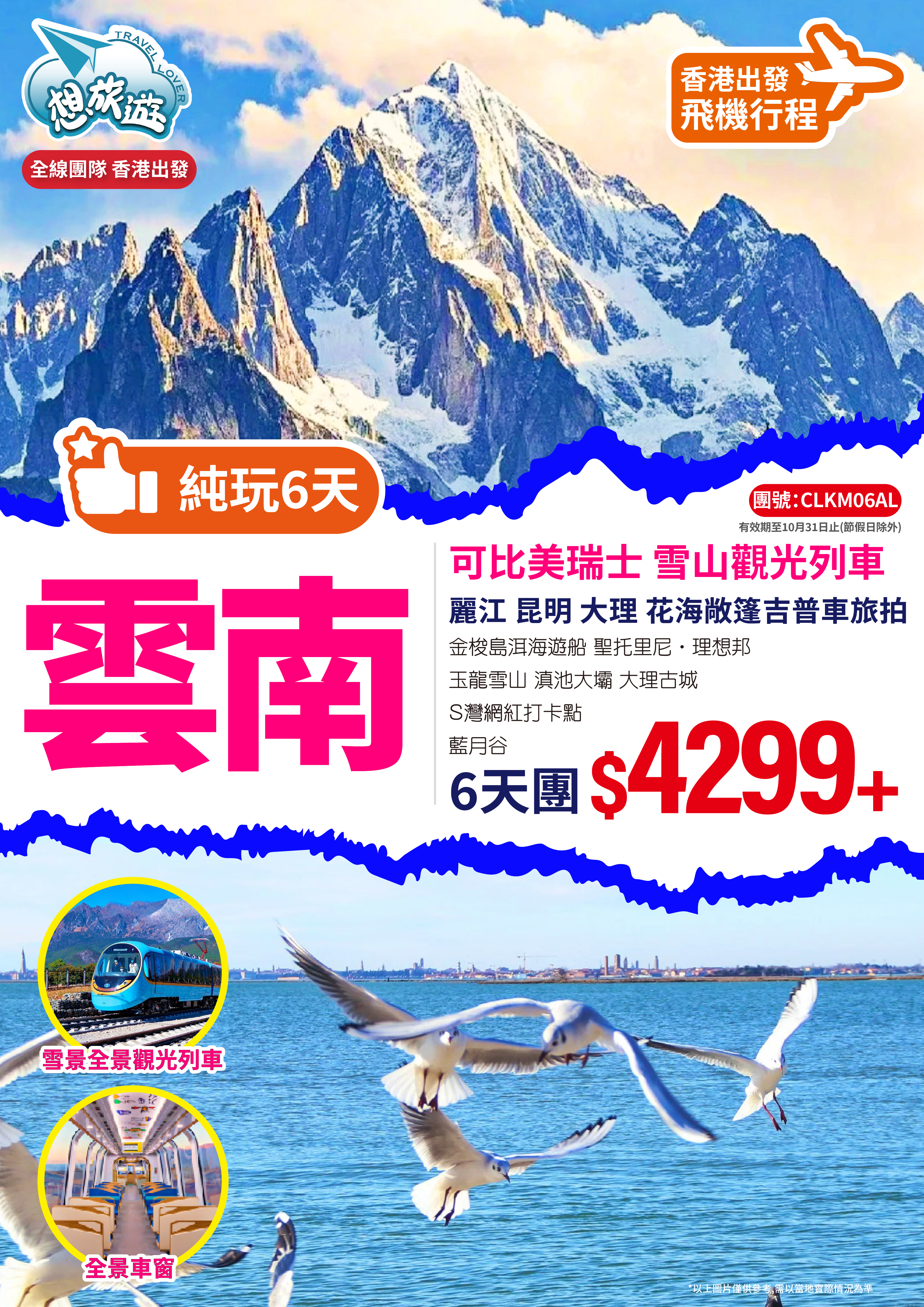 雲南全球首列全景觀光山地旅遊列車-昆明-大理麗江 6天團